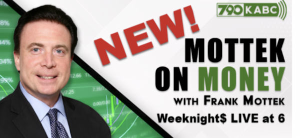 Frank Mottek Bio PicFrank Mottek is known as "The Voice of Business News in Los Angeles." An award-winning broadcast journalist with more than 30 years of experience, Frank currently hosts Mottek On Money weeknights live on the air at 6pm on 790 KABC in L.A. and worldwide on demand podcast. Mottek On Money received the 2020 Golden Mike Award from the Radio and Television News Association of Southern California for Best Business and Consumer Reporting.